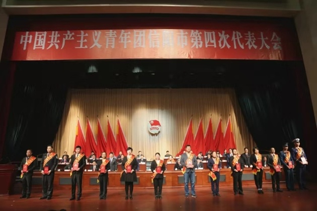 10月19日,共青团信阳市第四次代表大会在百花之声隆重开幕。开幕式上,对第六届“信阳青年五四奖章”和“信阳青年五四奖章集体”进行了表彰,我院水稻所郭桂英副研究员被授予第六届“信阳青年五四奖章”,省人大常委会副主任、市委书记乔新江等与会领导为获奖个人和集体颁奖。开幕式前,与会领导还接见了获奖个人和集体代表,并与出席共青团信阳市第四次代表大会的代表一起合影留念。
